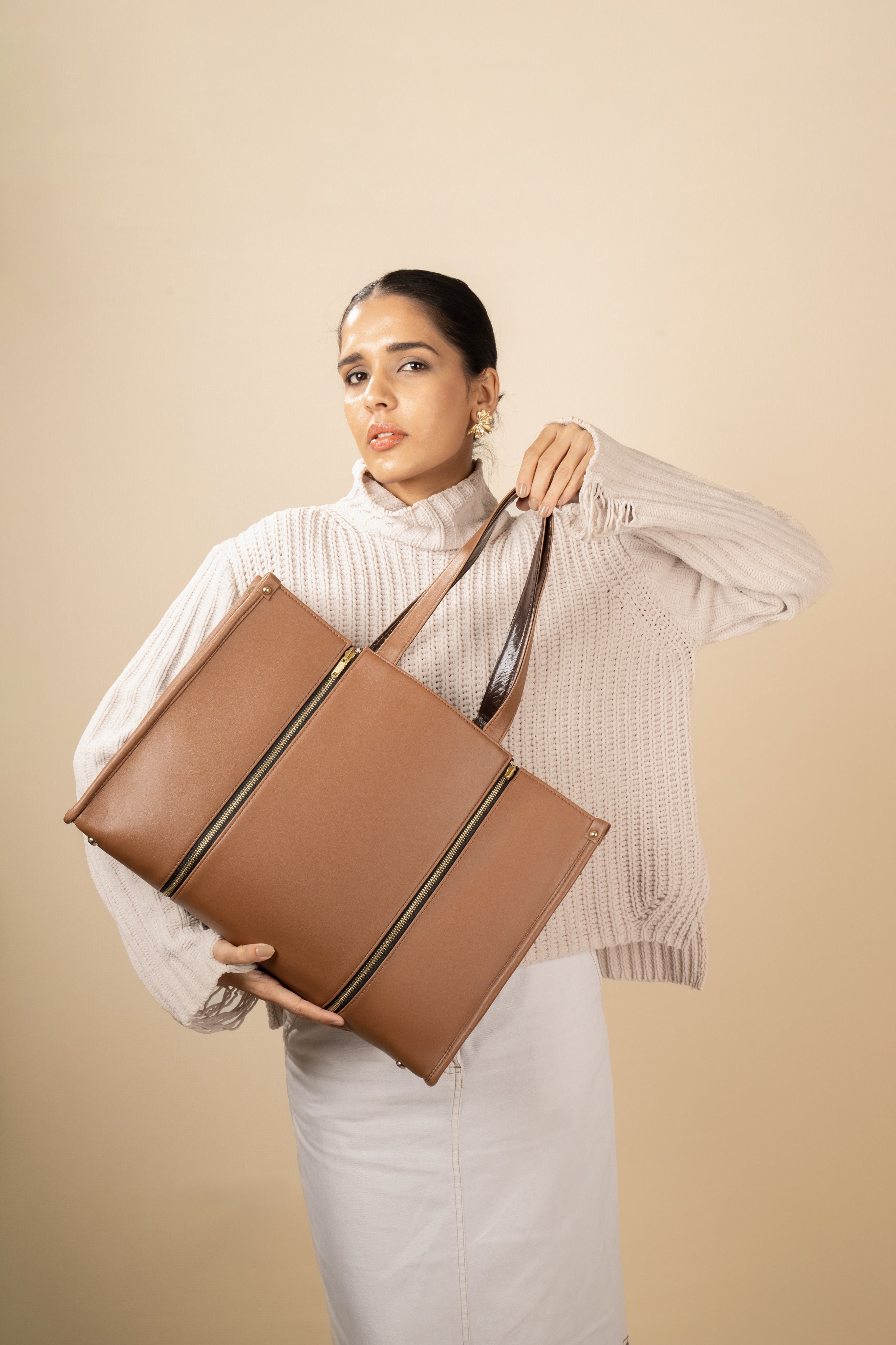 The Persona tote is crafted with a sleek monochrome exterior and a Reversible textured central panel, Flip and Style.